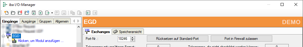 Wenn Sie im I/O-Manager das Modul einer Demo-Lizenz öffnen, signalisiert ein gelber Kopfbalken mit dem Wort "DEMO" auch hier den Demo-Status.