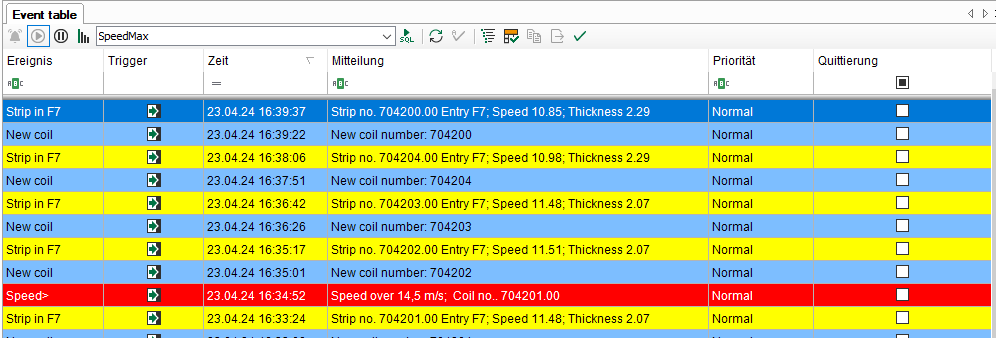 Nachdem eine Abfrage durchgeführt wurde, schaltet die Ereignisliste automatisch vom Live-Modus in den Pause-Modus. Wenn Sie zum Live-Modus zurückkehren wollen, müssen Sie auf die entsprechende Schaltfläche in der Symbolleiste klicken.