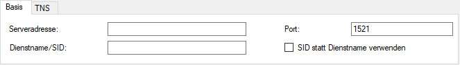 Die Datenbankverbindung über das Register Basis herzustellen wird für DB-Administratoren empfohlen. Ein Failover-Cluster können Sie mit diesen Einstellungen nicht konfigurieren. Nutzen Sie dafür das Register TNS, siehe Standard-Verbindungskonfiguration.