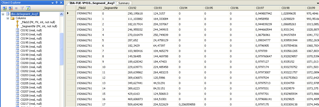 Die Tabelle "deSegment_AvgT" wird in einer mehrspaltigen Datenbank im MSSQL-Format wie in der folgenden Abbildung dargestellt.