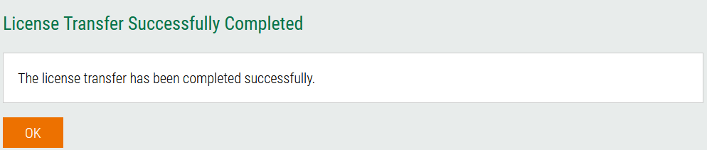 Mit diesem Schritt wird die erfolgreiche Durchführung der Lizenzübertragung bestätigt.