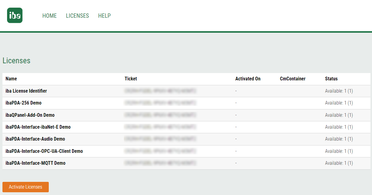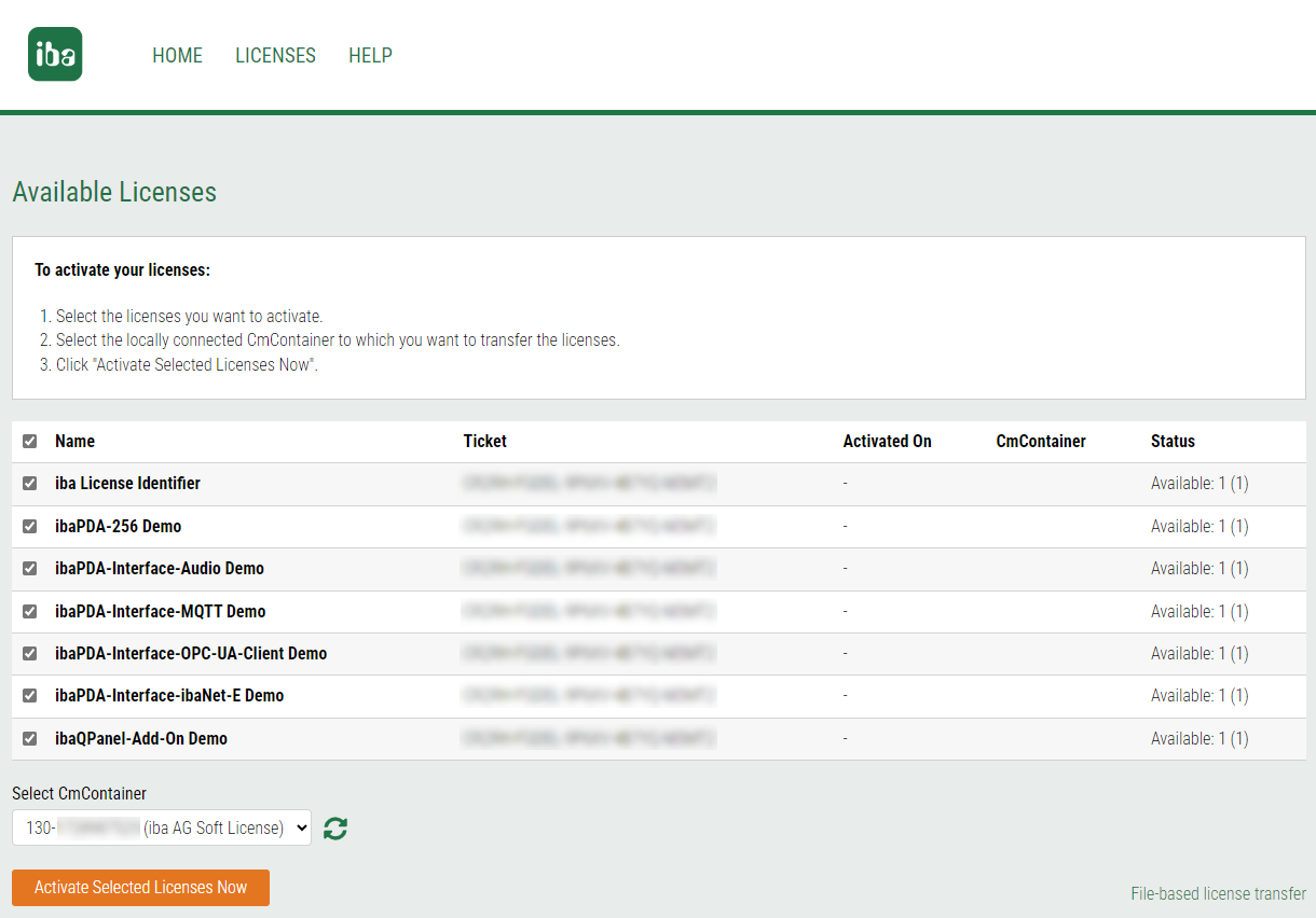 Mit dieser Ticketnummer können Sie im iba AG WebDepot Lizenzen in Ihren CmContainer übertragen und vorhandene Lizenzen einsehen.