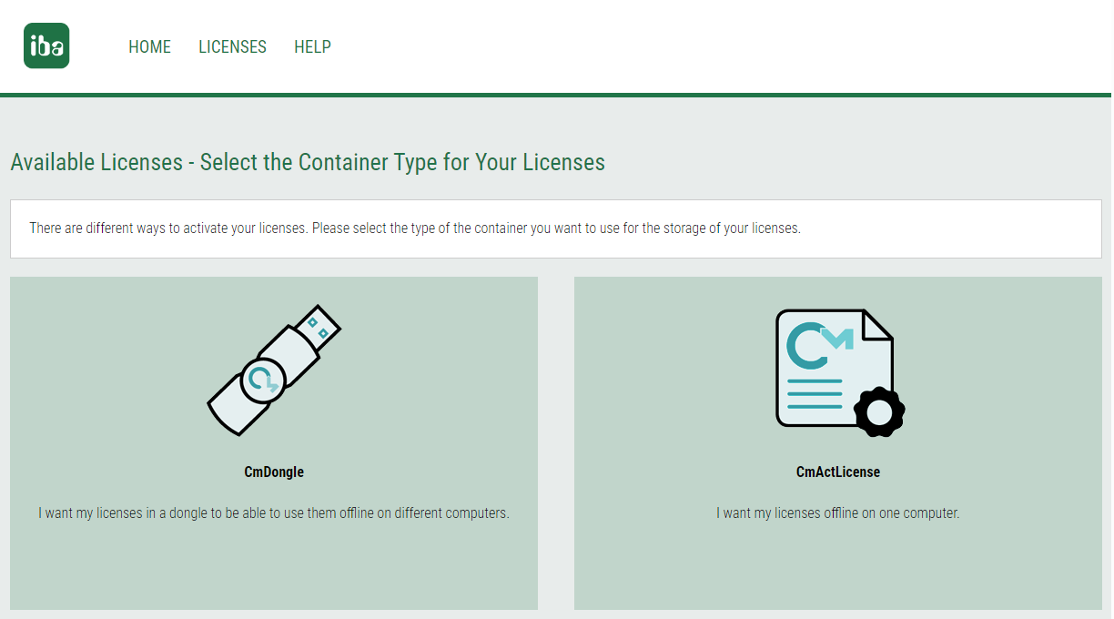 Je nachdem, ob Sie die Lizenzen auf einen USB-Dongle (CmDongle) oder in eine rechnergebundene Soft-Lizenz (CmActLicense) schreiben lassen möchten, wählen Sie die entsprechende Option aus.