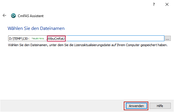 Um diesen Schritt durchführen zu können, benötigen Sie eine Datei mit der Endung *.WibuCmRaU.