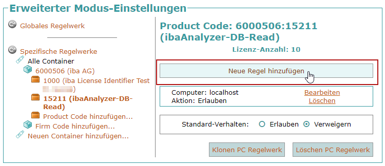Für jeden Product Code können mehrere Regeln definiert werden, z. B. für mehrere PCs, Subnetze, Benutzer oder Gruppen. |