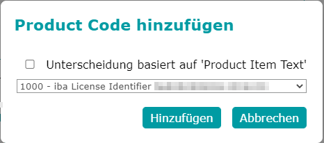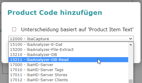 Klicken Sie erneut auf "Product Code hinzufügen…" und wählen Sie in der AUswahlliste die gewünschte Produktlizenz aus.