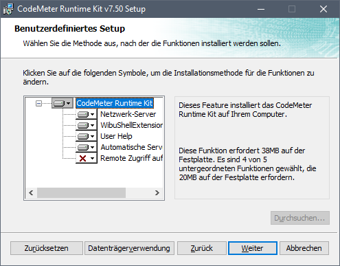 CodeMeterRuntime.exeaus.(Beispiel: CodeMeter Runtime v7.50)