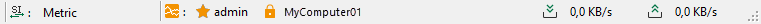 ibaPDA-Client ist mit dem ibaPDA-Server auf dem Rechner MyComputer01 verbunden und als Administrator angemeldet. Daten-Upload-Rate beträgt momentan 0,0 kB/s und die Download-Rate 0,0 kB/s. Das eingestellte Einheitensystem ist metrisch.