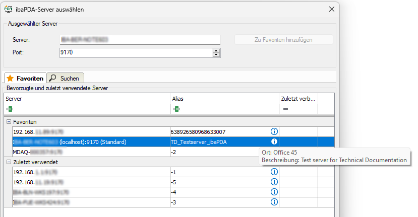 Bei Bedarf können Sie hier dem Rechner einen Alias-Namen geben, der z. B. verständlicher als der Hostname ist. Dieser Alias wird dann auch in den Server auswählen-Dialogen auf der Client-Seite in den Registern Suchen und Favoriten angezeigt und hilft somit, den gewünschten Server leichter zu identifizieren.