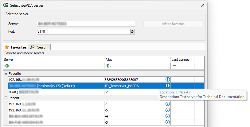 If needed, you can assign an alias to the computer, which is, for example, more intelligible than the host name. This alias will also be available on client side in the Select server dialogs in the Search and Favorites tabs and hence, helps to identify the desired server.