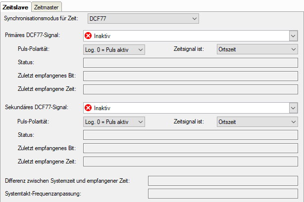 Der Konfigurationsdialog bietet die Möglichkeit zur Konfiguration von zwei DCF77-Signalen. Somit kann eine redundante Zeitführung realisiert werden.