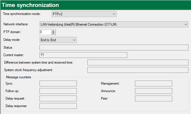 This overview shows different message counters. There is one counter per telegram type. If there is a master-slave connection, the counters usually count up: sync, announce, delay request and delay response.