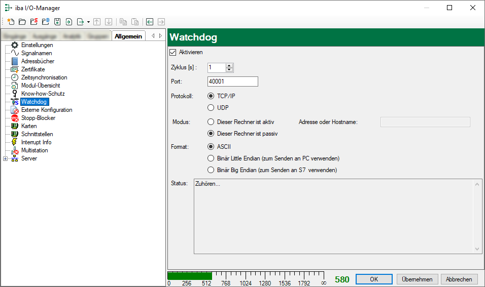 The watchdog function is used to monitor the status and operation of ibaPDA with the help of another system, e. g. a supervisory PLC.