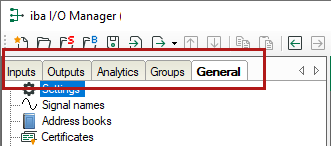 All data sources and signals must first be defined in the I/O Manager. How the signals are then eventually used (display, recording, etc.) is subsequently determined in the other dialogs.