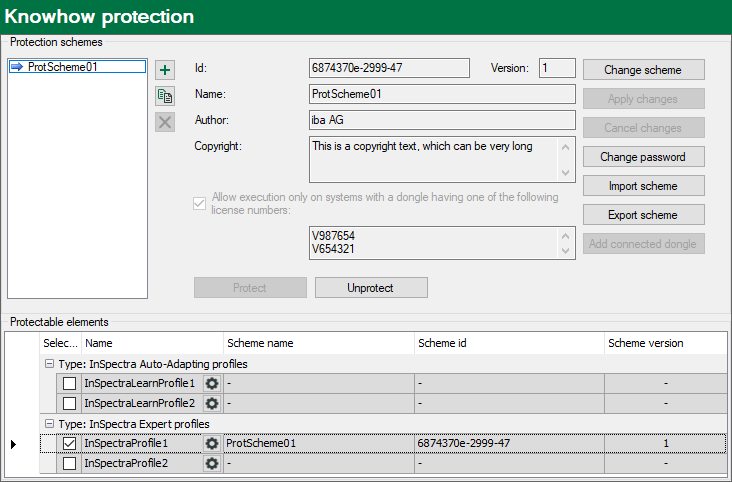 License protection The protected elements are only executed on systems that run with a previously registered dongle or registered soft license. Several license numbers can be registered.