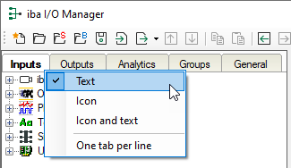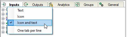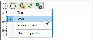 Concerning the contents of the tabs you may choose between text, icon or text + icon. Use the context menu on any tab to make your choice.