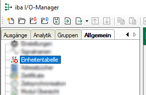 Markieren Sie den Knoten Einheitentabelle im Register Allgemein des I/O-Managers.
