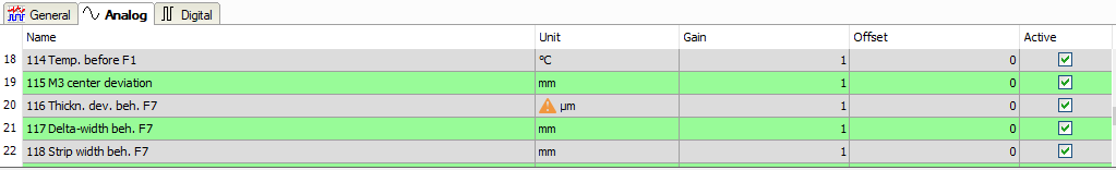 When configuring the signals, you can mix units from different unit systems. Therefore, all units which are part of the unit table are available in the selection list and not only those units from the primary system.