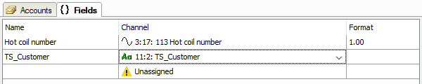 In this tab, you can define fields for signal values (numeric and text) that can be used as placeholders in emails. Thus, with the fields, current analog and digital signals or calculated values can be inserted into the message. Accordingly, you can insert values of text signals into the message.