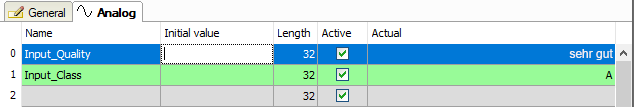 Each line corresponds to a text signal. Each text signal can be assigned a text input control in ibaQPanel. In the figure, the ibaQPanel text input module has for instance two inputs.