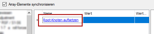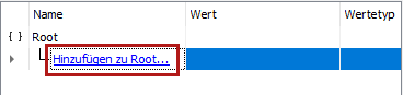 Bevor Sie eine Datenstruktur konfigurieren können, müssen Sie den Root-Node definieren. Klicken Sie dazu auf Root-Knoten aufsetzen in der Spalte Name.