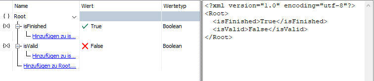 Da XML das Datentyp-Konzept nicht unterstützt, werden im XML-Modus Booleans immer zu true oder false aufgelöst.
