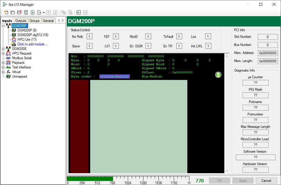 In the PCI Info area of the dialog, you find the following information: