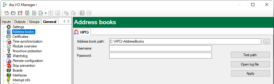 Wenn die Datei toc.ini nicht auf dem lokalen Laufwerk des ibaPDA-Rechners gespeichert ist, sondern auf einem Netzlaufwerk, dann sind hier die Anmeldedaten