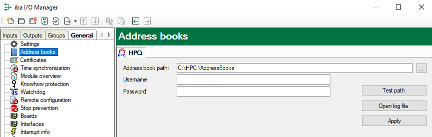 If the toc.ini file is not stored on the local drive of the ibaPDA computer but on a network drive, then here you have to enter the credentials (user
