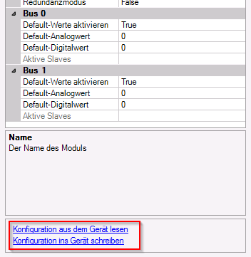 Konfiguration aus dem Gerät lesen / in das Gerät schreiben