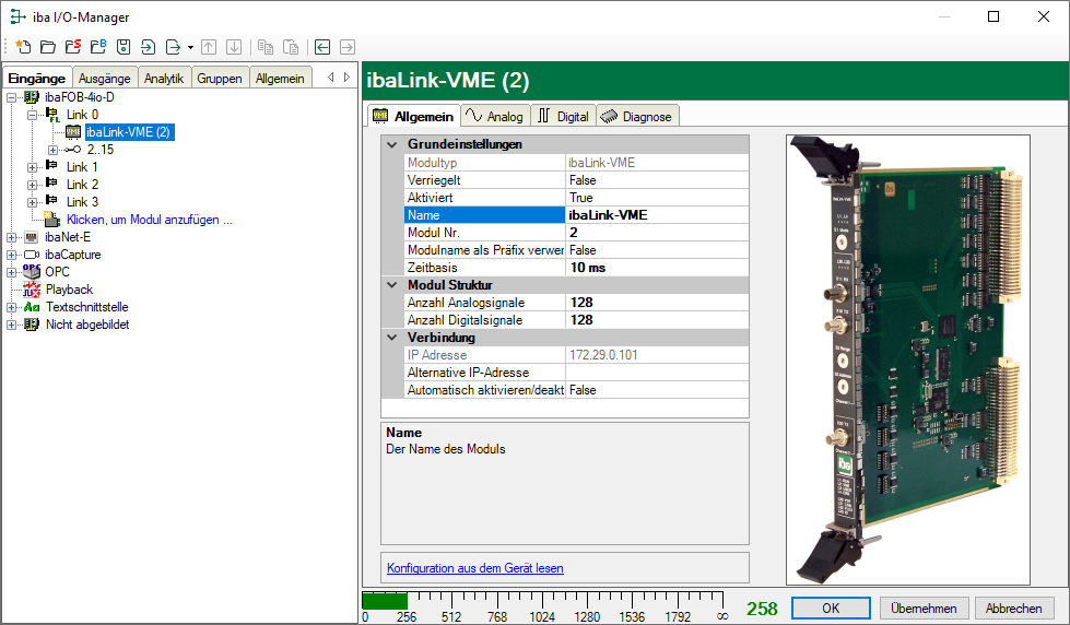 Festlegung der Anzahl der Analogsignale für dieses Modul.