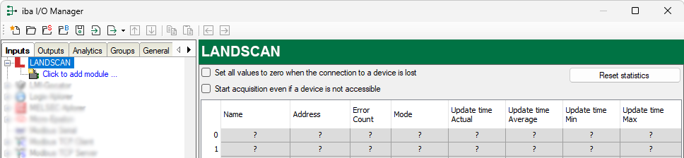 A detailed description of this interface and its configuration can be found in the corresponding manual for the product, ibaPDA-Interface-LANDSCAN. |
