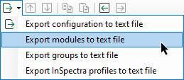 A function to export modules is also available via the Export button in the I/O Manager toolbar. To do this, click Export modules to text file.