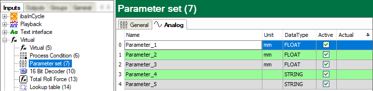 In the Analog and Digital tabs you will find the output values for the module. If a parameter set is currently selected while data acquisition is in progress, the actual values are also displayed.