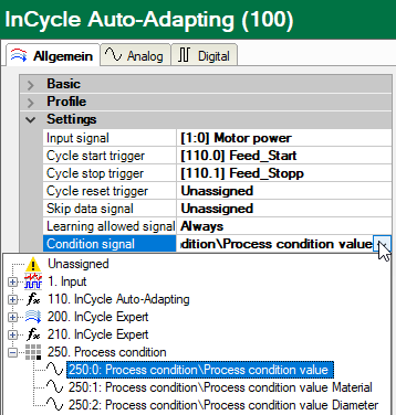 Once you have finished configuring the "Process condition" module, then you can select the desired condition signal in an Auto-Adapting module in the general module settings.