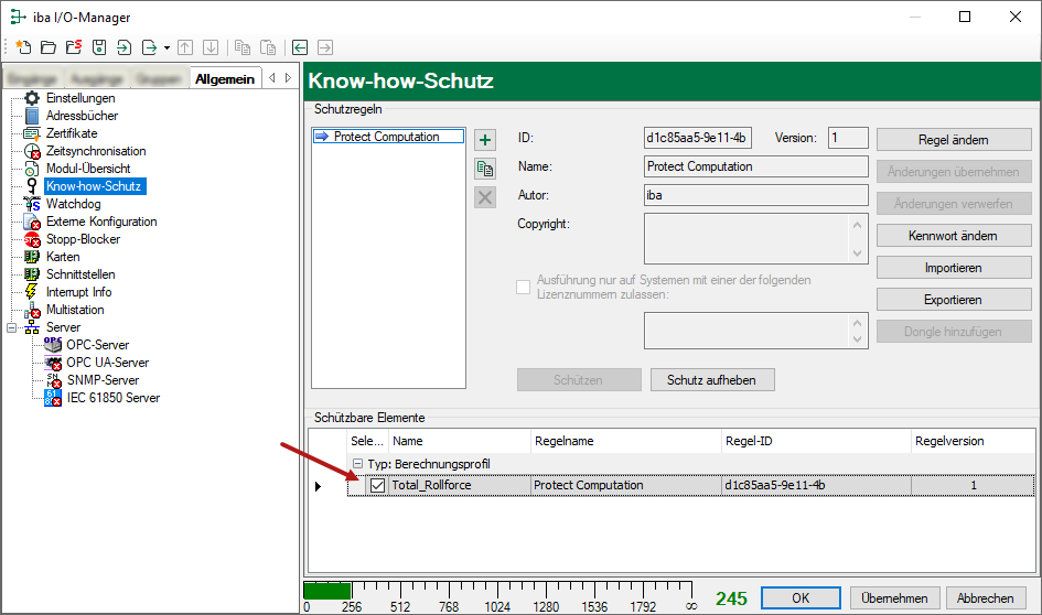 Alle definierten Profile werden im Dialog Know-how-Schutz aufgelistet. Die nachfolgende Abbildung zeigt ein Beispiel eines Profils für ein Berechnungsmodul.