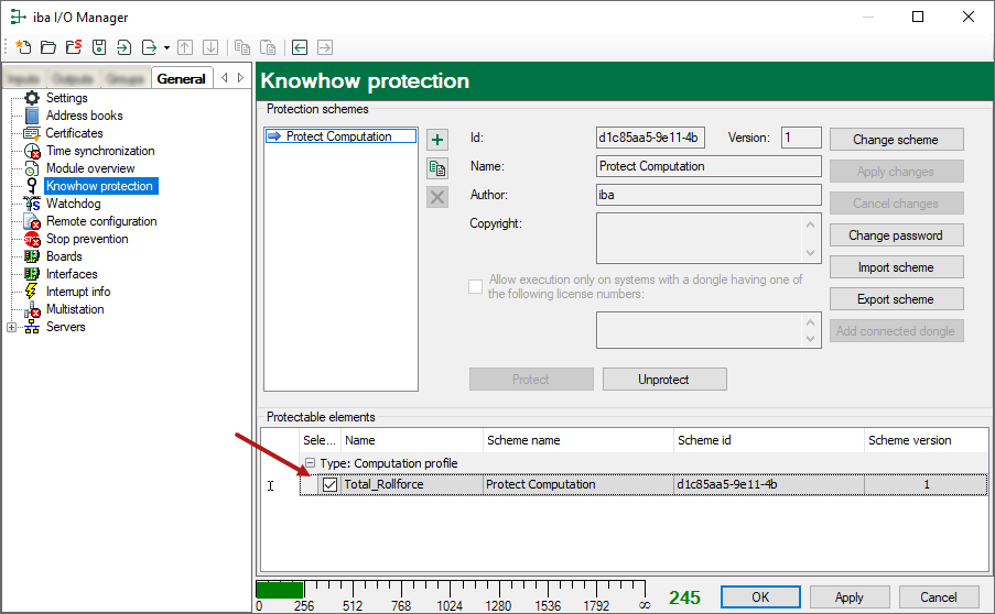 All defined profiles are listed in the know-how protection dialog. The following figure shows the example for a profile of a computation module.