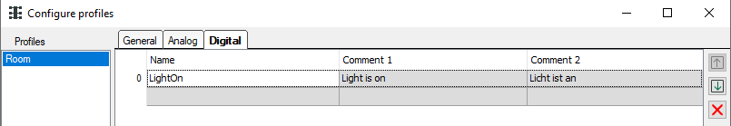 6. On the Digital tab define the digital signals, which are needed for the visualization (LightON).