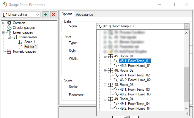 Link the QPanel elements of each room with their respective signals of the signal mapper modules "Room_01" to "Room_04". The input signals of the QPanel elements still have the same name (e.g. "Temperature") although they come from different modules.