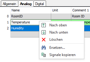 Beim Datentyp für Analogwerte wird nur zwischen Text und Numerisch unterschieden. Weder Textlänge noch Datentyp müssen hier näher spezifiziert werden, da sie vom später zugewiesenen Quellsignal abhängig sind.