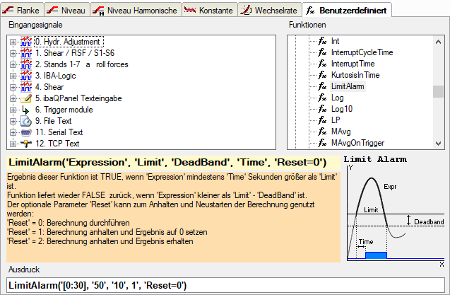 Funktionen des Ausdruckseditors in vollem Umfang verfügbar. Beachten Sie, dass das Ergebnis ein Digitalsignal sein muss. |