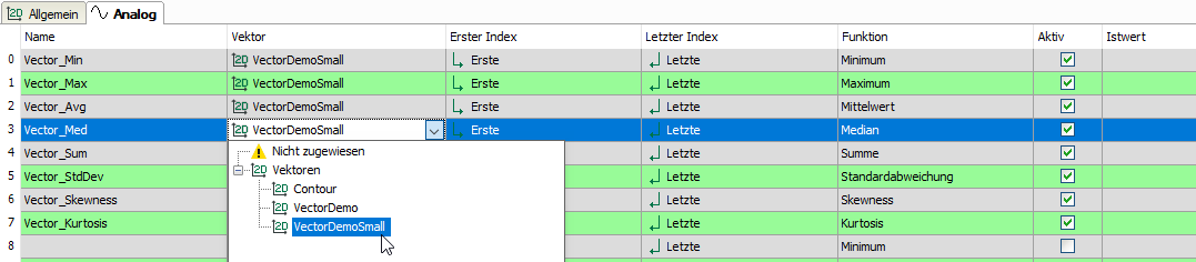 In der Spalte Vektor wird für jedes Signal der Vektor VectorDemoSmall ausgewählt.