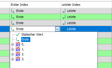 Erster Index = Erste und Letzter Index = Letzte, damit alle 12 Messzonen in die Berechnung einfließen. Diese Einstellung ist in diesem Beispiel gleichbedeutend wie Erster Index = 0 und Letzter Index = 11.