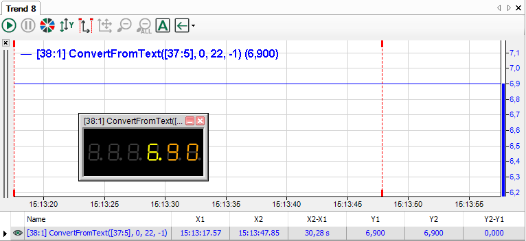 The function parses a floating-point number from the text and delivers the numeric value as an decimal number. 0 is output if there is no number in the first position of the range defined by the 'Begin' and 'End' arguments. Exception: if there are only spaces present up to the first numeric character. Otherwise the text is read up to the first non-numerical position or maximum to the 'end'. Leading zeros before a number must not to be interrupted by spaces or non-numerical characters.