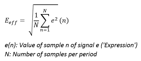 This function calculates the effective value of ‘Expression’ with a fundamental frequency of ‘Frequency’.
