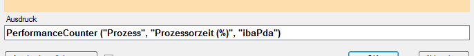 Beispiel für die Eingabe in ibaPDA zur Ermittlung der Prozessorzeit: