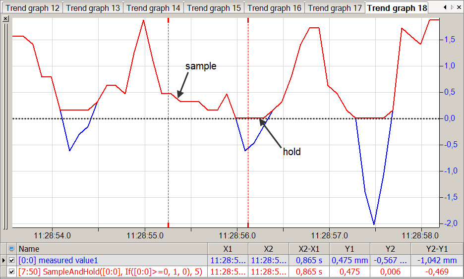 In the figure below the blue curve shows the measured value and the red curve shows the output value with held measured values.
