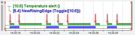 The rising edges of a temperature alert signal Temperature alert should switch a digital signal NewRisingEdge on and off.