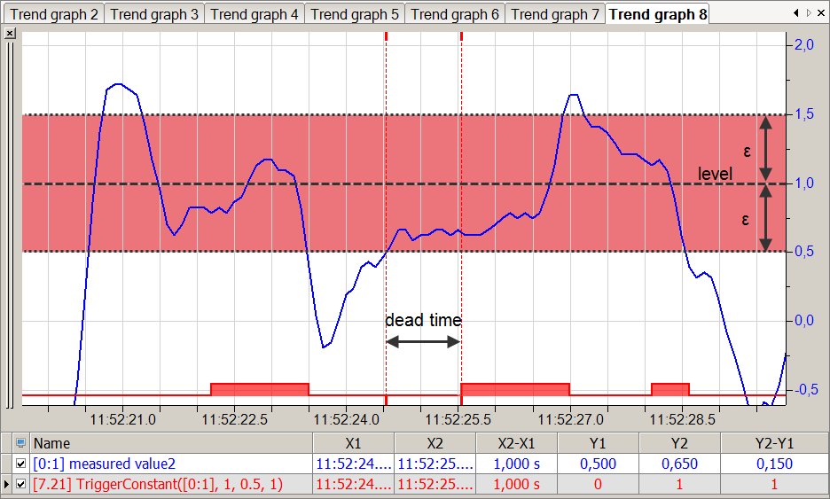 Die Funktion liefert TRUE, solange 'Expression' mindestens für die Dauer der 'DeadTime' innerhalb des Bereichs ['Level' - 'Epsilon','Level' + 'Epsilon'] bleibt.