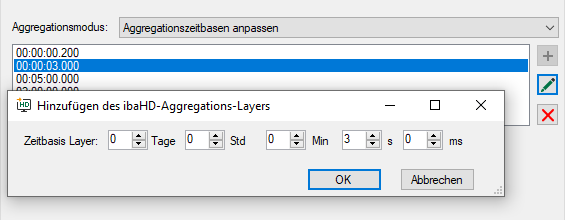 Wenn Sie die Zeitbasis manuell anpassen wollen, wählen Sie in der Auswahlliste dieses Feldes Aggregationszeitbasen anpassen.
